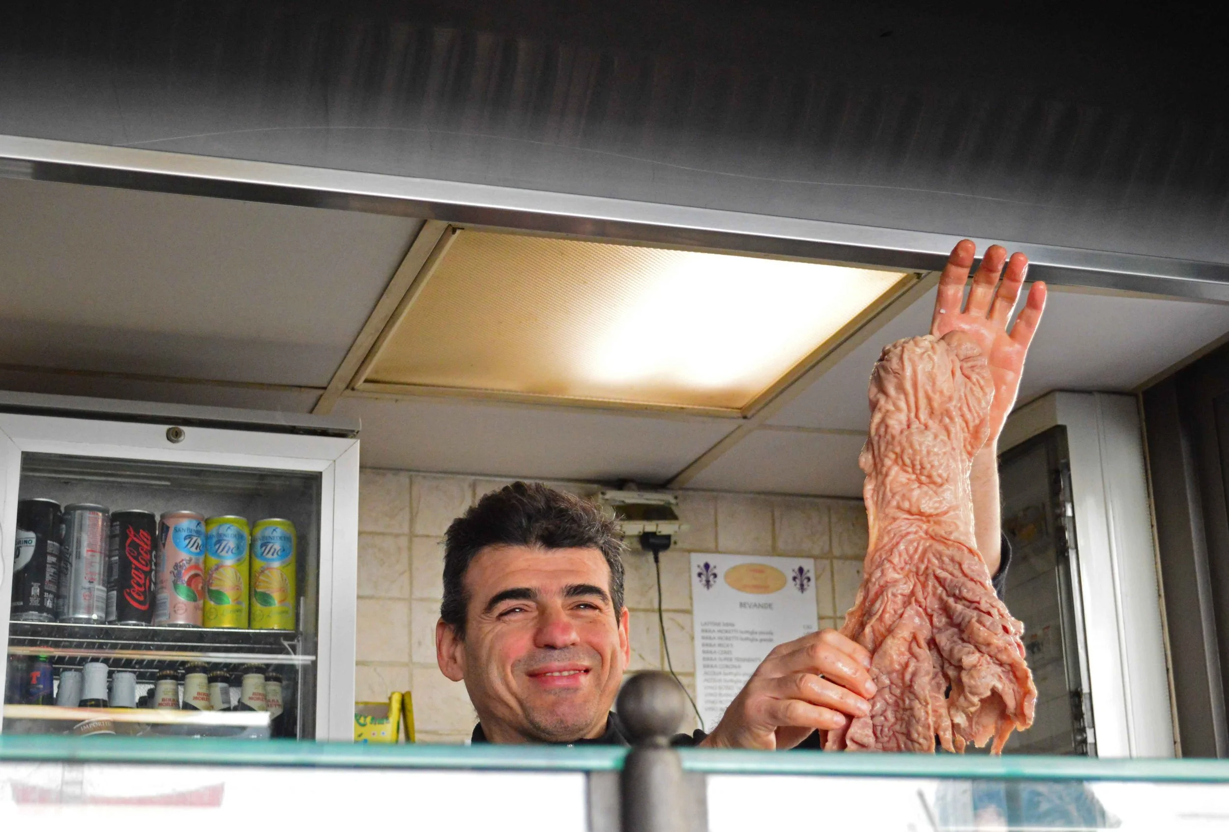 At the famous I Trippaio d’San Frediano stall in the Piazza dei Nerli, I had lampredotto panino which is a cow’s stomach (the fourth stomach to be precise) or tripe sandwich. The name and, let’s be honest, the look of the meat, is quite off-putting, but with the herby salsa verde it really was very delicious. I’m not sure the close up of the sandwich below really sells it – I just closed my eyes and tucked in as I so often do when I travel.