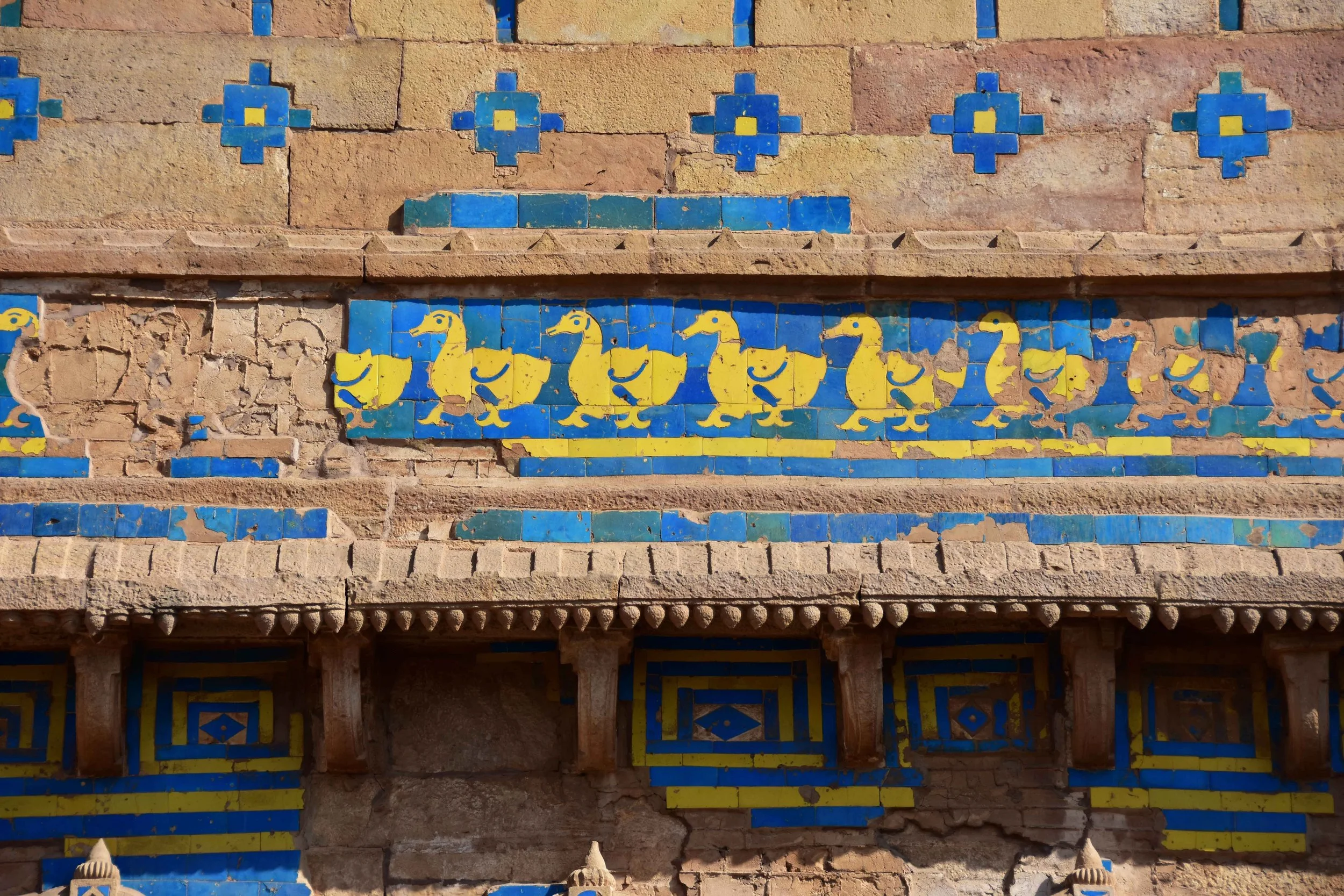 The architectural style is mix of Rajput, Mughal and Hindu but what I loved the most was the yellow and blue (and occasionally green) decorative tiling. An interesting fact about Gwalior Fort: it has the second oldest instance of zero written as a digit. It was found inscribed on stone in a temple and is thought to be about 1500 years old.