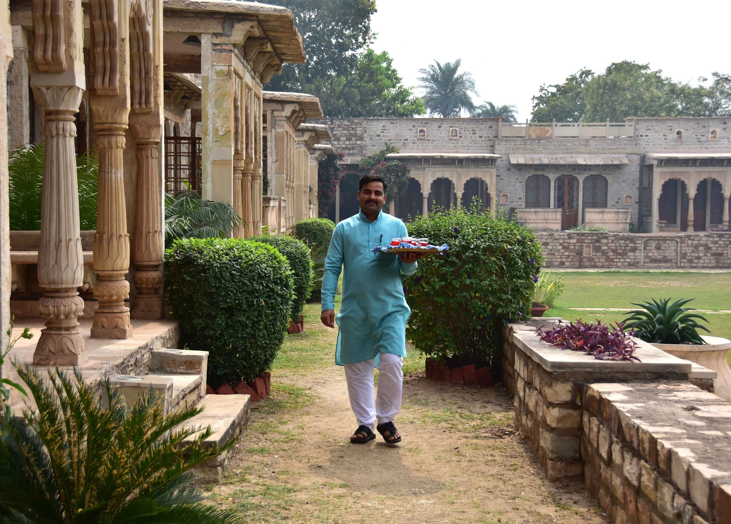 At Gwalior, we stayed at the Deo Bagh hotel. It’s one of the many heritage hotels they have across India, and it was my favourite ever. It was formerly a Maratha summer house for ladies, and consists of a series of rooms around a central garden. Each room was decorated with antique furniture and Indian art. My room was Ranjit Raje Mahal.