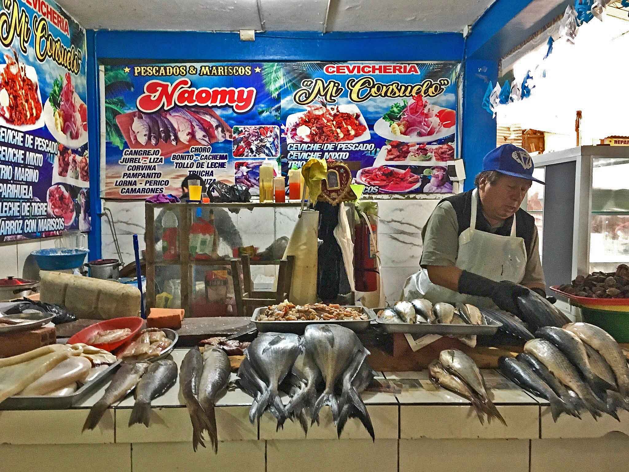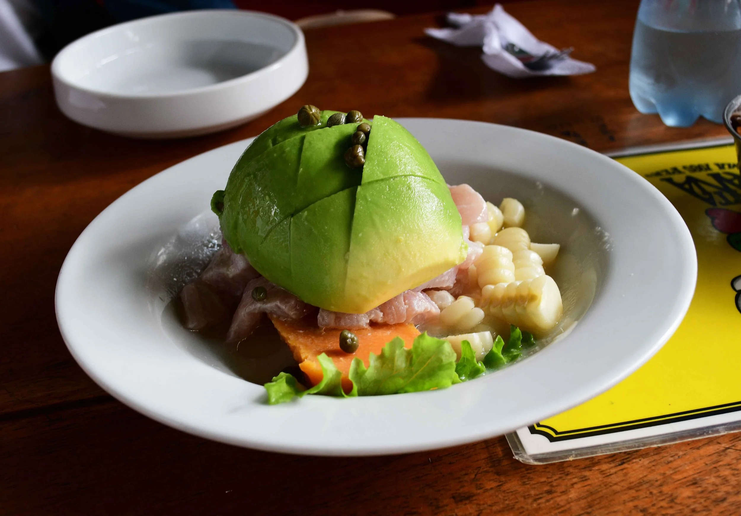 Afterwards we went down some back alleyways and came to an unpromising sports bar full of plastic chairs, and local men drinking beer and watching the football on a huge screen. I was the only ‘gringo’ there, and was wondering why we had come. Out came a plate of ceviche and avocado that was incredibly fresh and delicious, I polished it off so quickly they immediately brought out anther plate. The brothers were writing furiously, my enthusiasm for this local speciality clearly evident. Ceviche, this one was sea bass, is now in my top global food experiences.