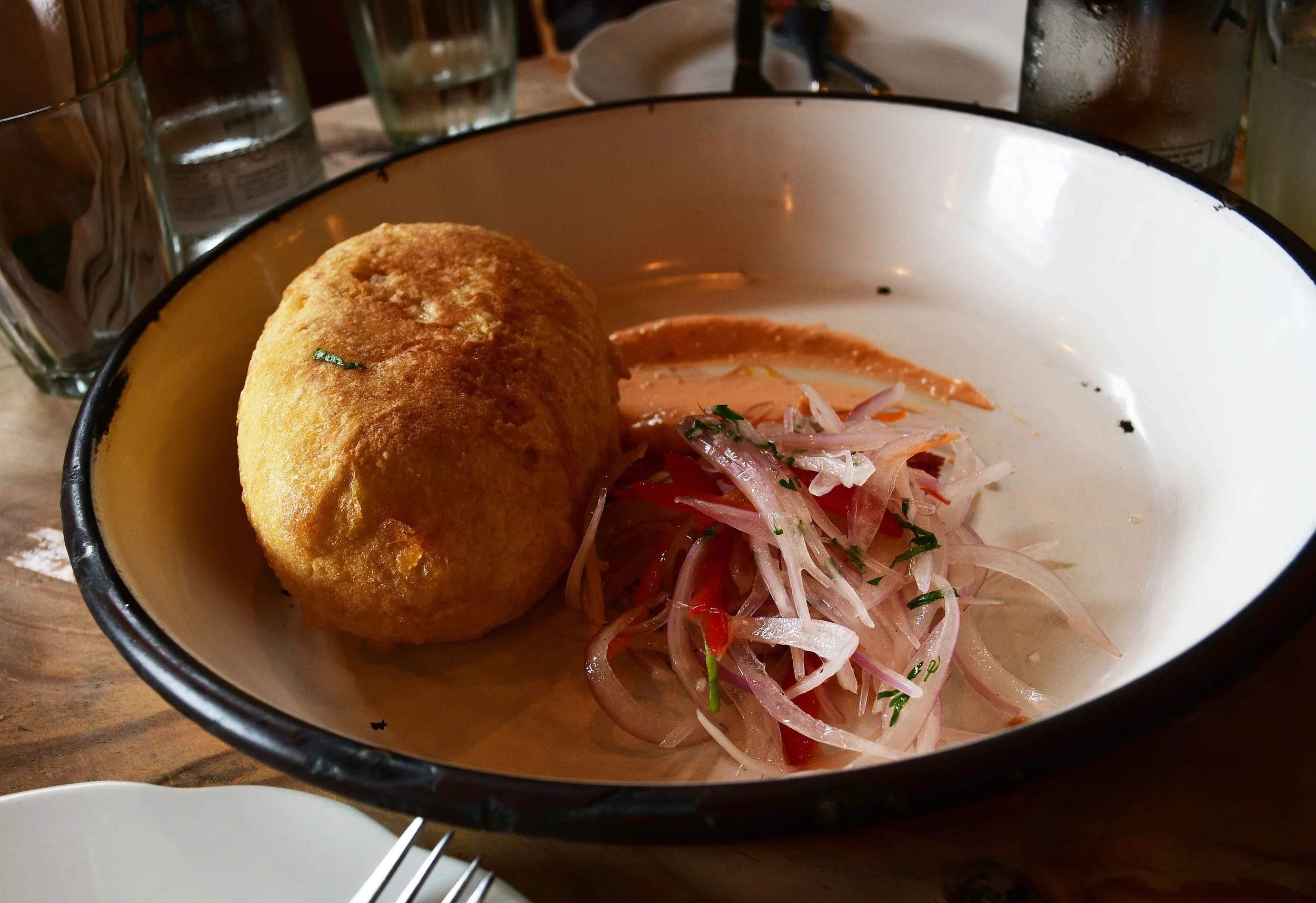 What didn’t work for me was the coffee shop start where I politely drank a strong but uninteresting espresso, and the then boring, ubiquitous craft beer stop. Both of these things I could do at home in Sussex, but I don’t particularly like either, I had wanted to eat and drink the local food. However the rest of it was very good. We went to the Isolina restaurant where I had a my first ever pisco sour, and then some very tasty food including papa rellena, stuffed potato, and xxxx. It was slightly disconcerting eating so enthusiastically while the brothers watched me and took notes.