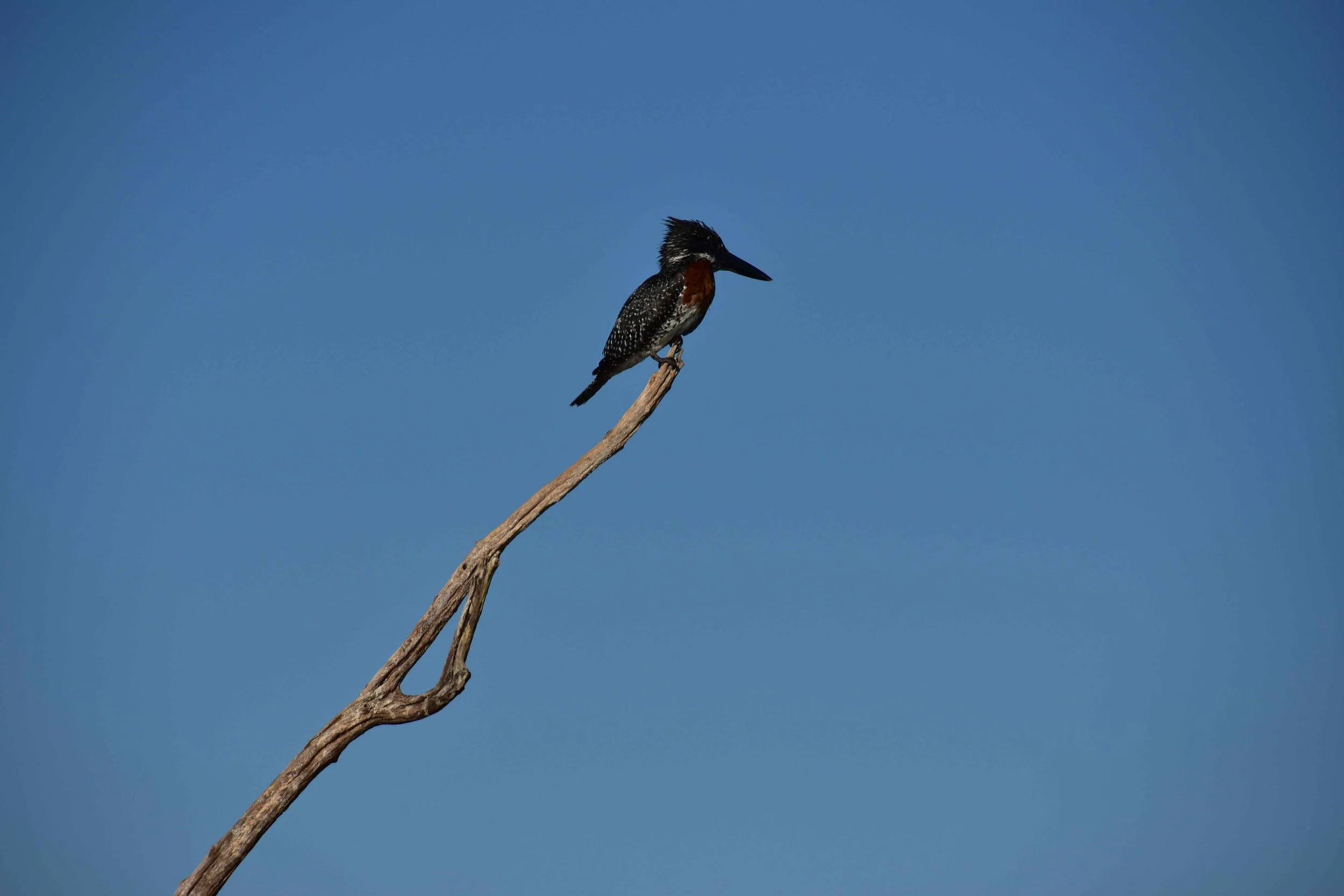 We were taken on a bush walk which was really interesting – we found a fish skull that had been dropped by a fish eagle from a tree, a baboon skull, elephant foot prints – plus we saw some elephants. And woodland kingfishers calling to each other and a red-throated barbet which was also very beautiful. I found a perfect bright blue feather which I wasn’t allowed to keep (I’m still upset).